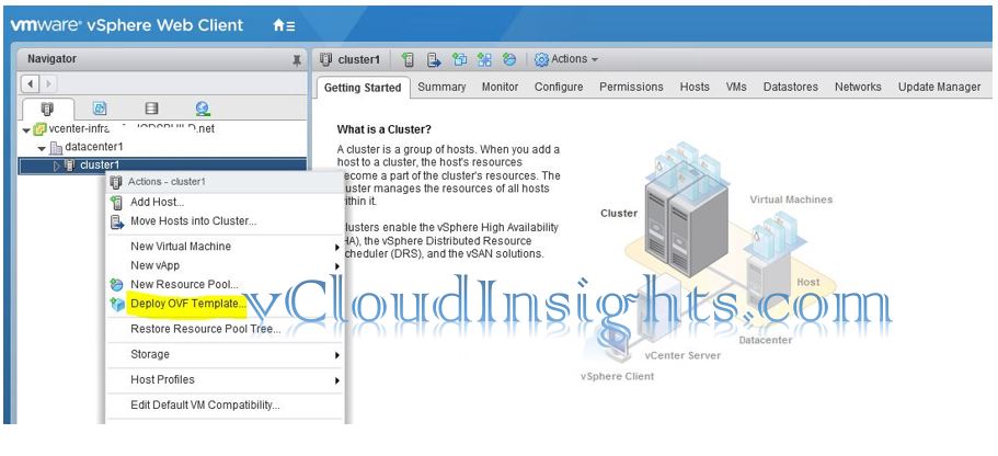 - Login to vCenter webclient and select Deploy OVF Template.