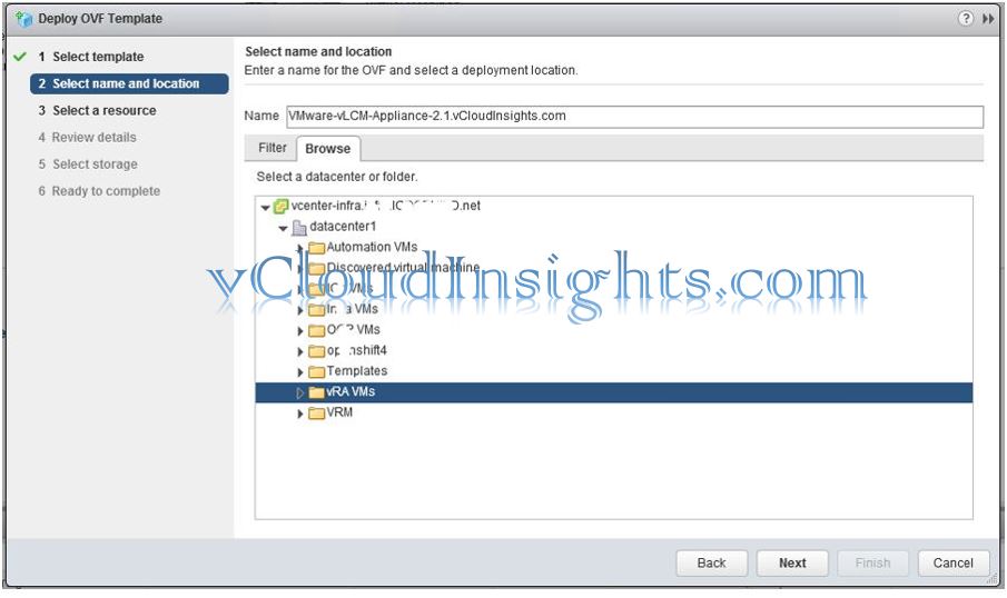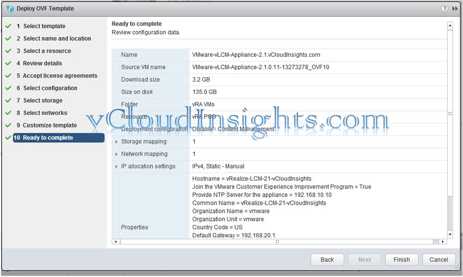- Review the details of vRLCM appliance and click on finish so that vm deployment can start.