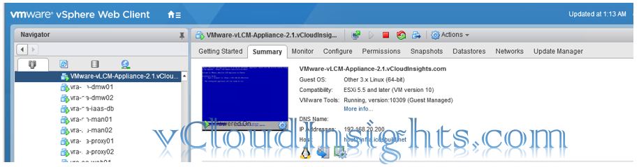- Once deployment complete Power-On the appliance and verify that the vRealize Suite Lifecycle Manager appliance is deployed by entering its FQDN.