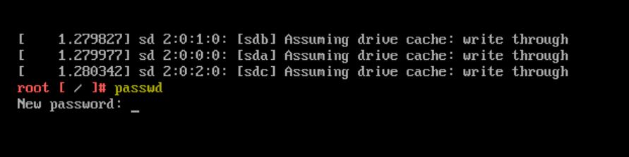 7. In the Command prompt, enter the command passwd and provide a new root password (twice for confirmation):