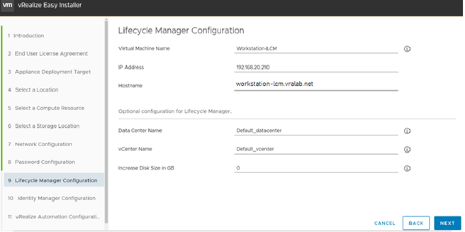 Now configure Life Cycle Manager virtual machine name, IP & hostname and click Next.