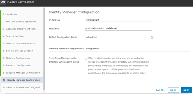 We have option to configure New Identity manager or Import existing identity manager. In my case I am deploying a new Identity Manager.