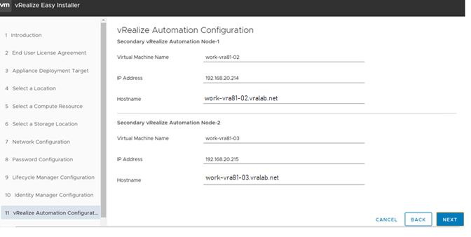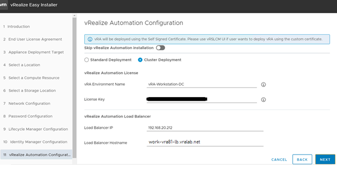 Configure the Environment Name, License key, Load balancer and vRAs node Name, IP and Hostname and move Next.