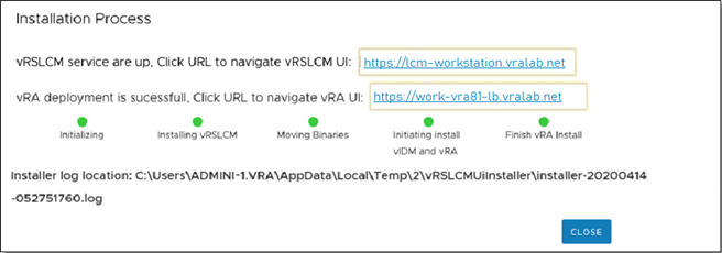 Wait for it to complete successfully. You will see a below windows and get link to access lcm & vRA URL.