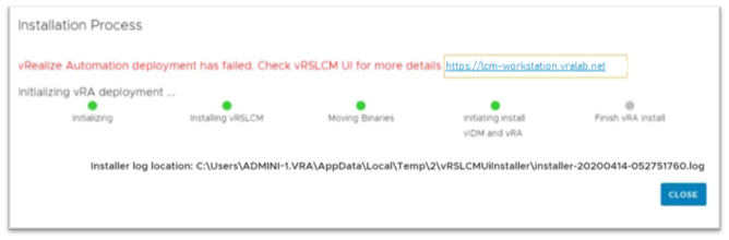 But in my case, I got error that vRealize Automation deployment has failed. Check vRSLCM UI for more details and your lcm address.