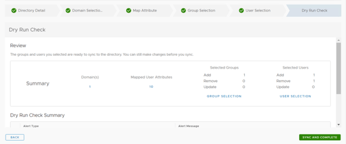 If everything looks fine and no Alert in Dry Run Check Summary click on Sync and Complete.