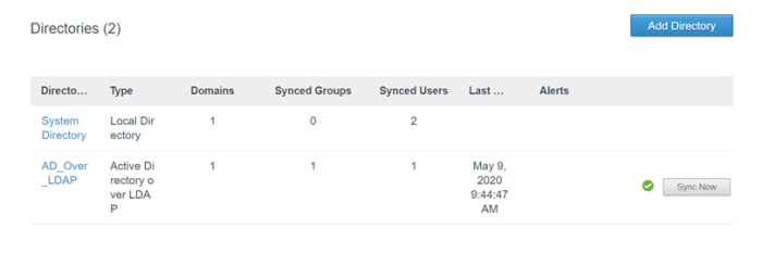 - After successful synchronization you will see the directory has been added and last sync status as green.