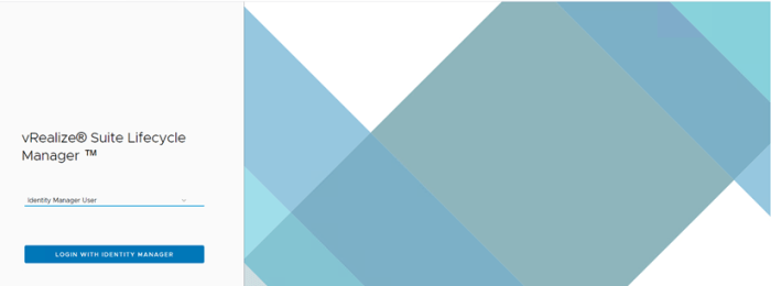 - Open vRSLCM link and select Identity Manager User from drop down. Once you will select Identity Manager User you will be redirect to net page click on Login with Identity Manager.