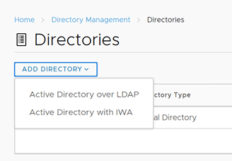 - Click on Add Directory and select how you want to add directory service, Active Directory over LDAP or Active Directory with IWA. In my case I will add it via Active Directory with IWA.