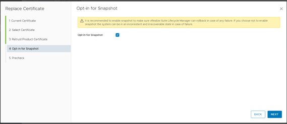 In this page you can Opt-in for snapshot, just check the box against Opt-in for Snapshot option. It’s a best practice to take screenshot before doing any change on appliance.
