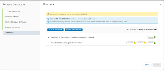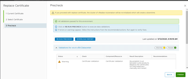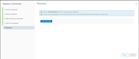 In the Precheck window click on Run Precheck to initiate Precheck before replacing the certificate.