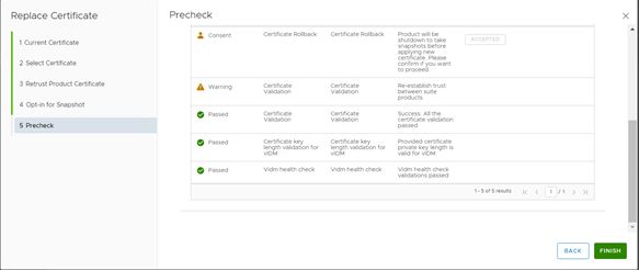 Please Accept, once you will accept the consent Finish window will enable. Now you can click on Finish to start the certificate replacement process.