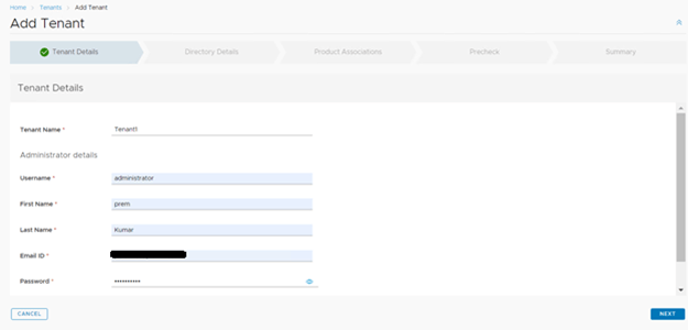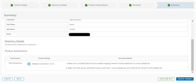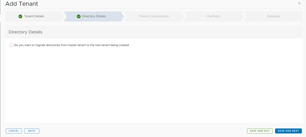 In the directory details check if you have already integrated your directory service with vRA and want to use the same with this tenant.
