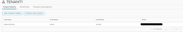 Here select Add Tenant Admin to add local user in tenant or Search and Assign to search for domain user and add.