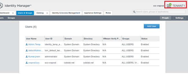 Now we will validate the tenant by login to master tenant identity manager at https://master-tenant.vralab.net and Tenant1 at https://tenant1.vralab.net