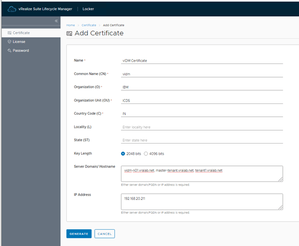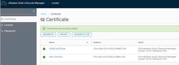 Repeat the above step to create vRA certificate as well.