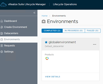 Once Tenant is enabled, we need to apply vRA certificate. To replace the certificate go to Lifecycle Operations Environments and select vRA environment and click on view details.