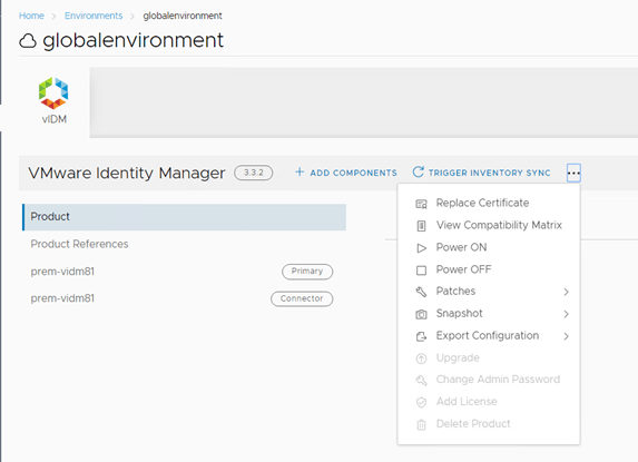 Under Lifecycle Operations go to Environments and select vIDM environment and click on view details.