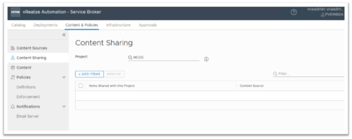 5. Now from vRealize Automation – Cloud Service Console go the Service Broker