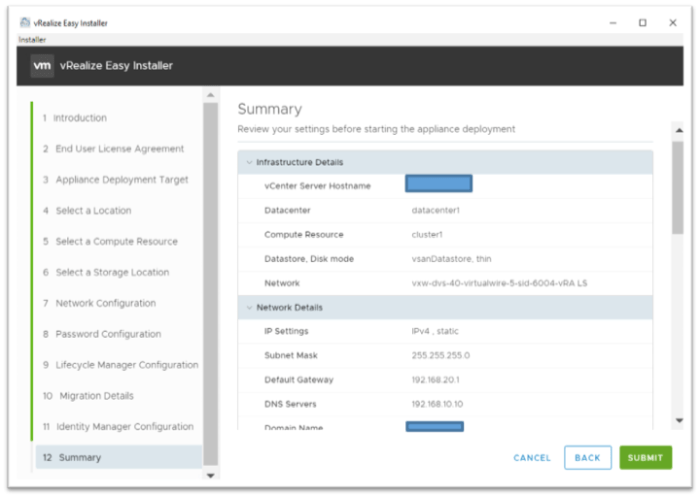 9. Give the vRealize Suite Lifecycle Manager 8.0.1 VM name, Hostname, and the IP details