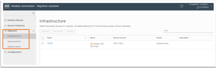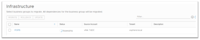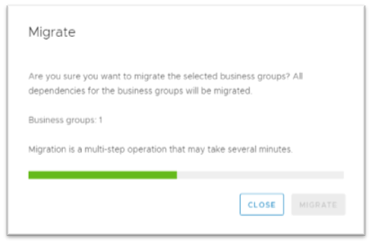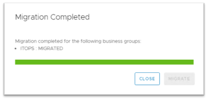 1. Once you are ready with the migration Select the Business group in Infrastructure and click Migrate.