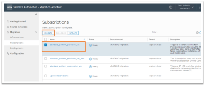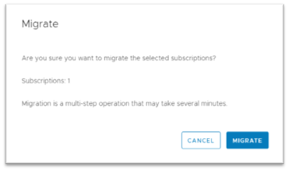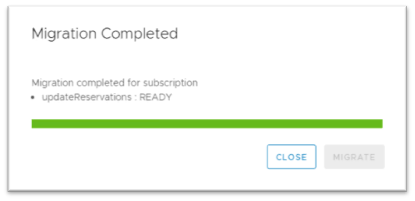 - Migrated – Migration is complete and successful. You can view and use the migrated subscription in your vRealize Automation 8 environment.