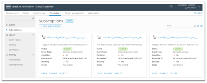 Tip: Migrated subscriptions are listed in Cloud Assembly > Extensibility