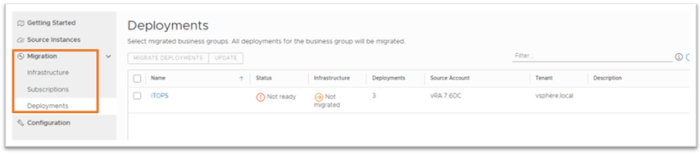 You can only migrate deployments after successfully migrating the associated business group to vRealize Automation 8, regardless of deployment assessment status.